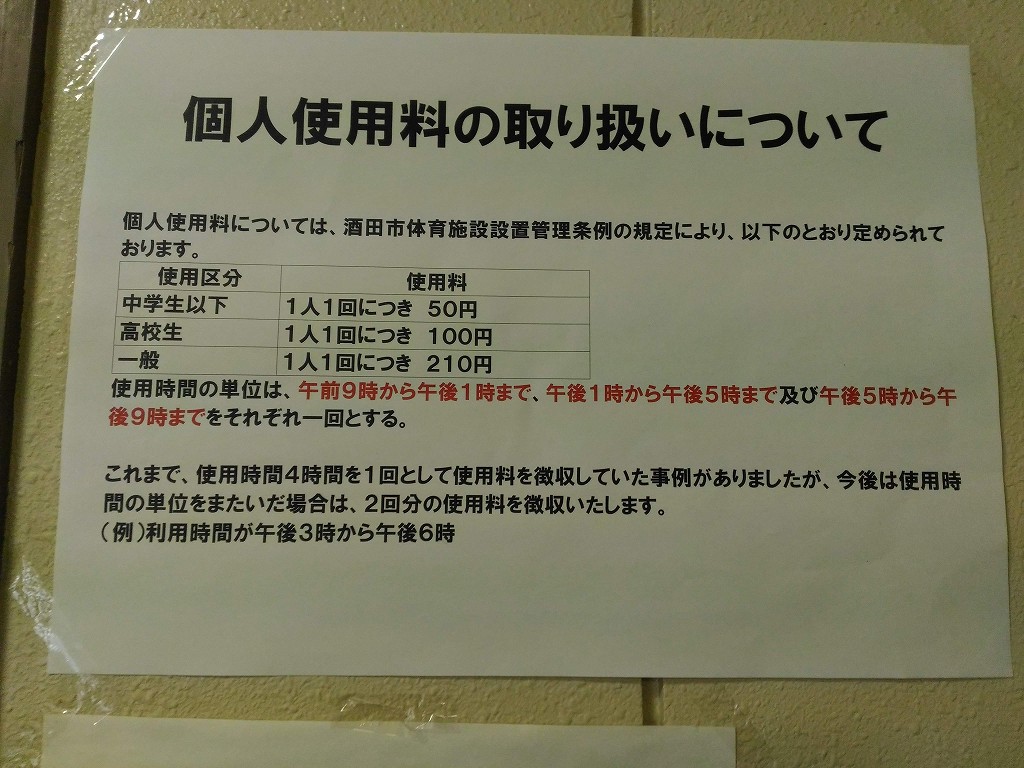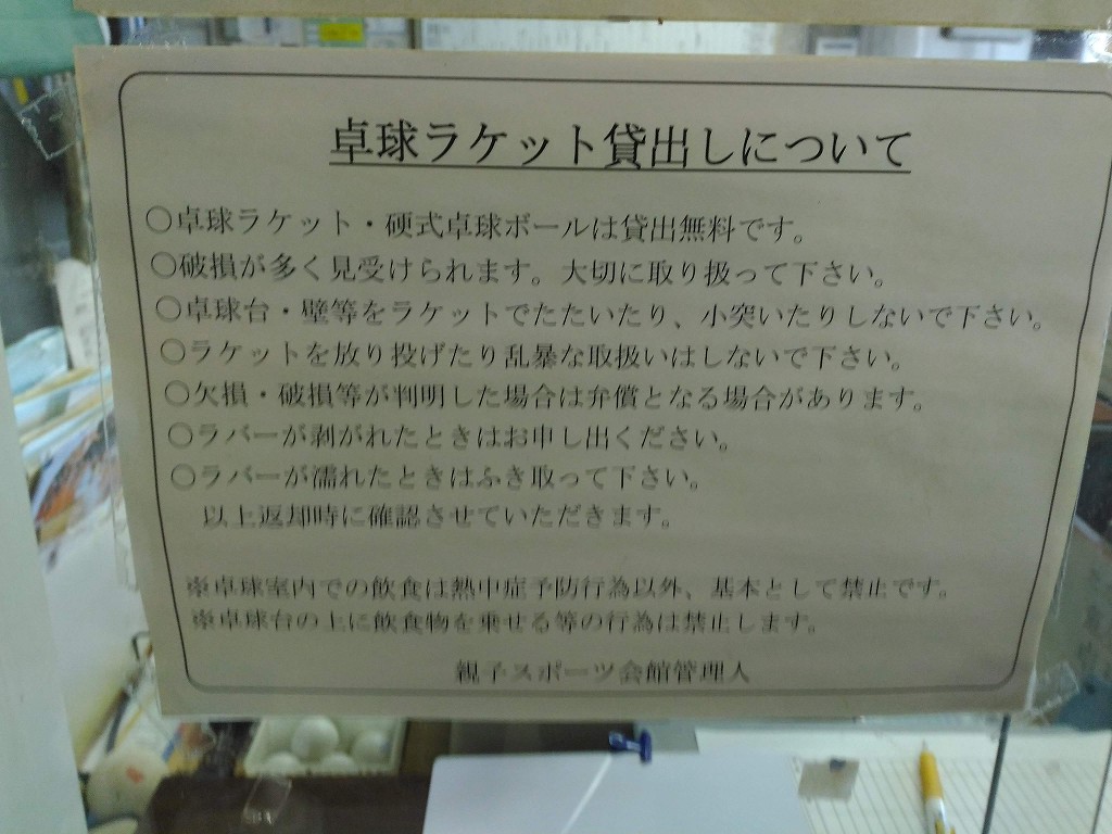 24 February 酒田市親子スポーツ会館で卓球を遊びたい時の料金や台の情報まとめ この記事では、酒田市の「親子スポーツ会館」で卓球を遊びたいときの、料金や台数などの情報をまとめています。 親子行事やPTA、地域や職場のレクリエーションの情報として、参考にしてみてくださいね^^ 施設外観と駐車場の情報 親子スポーツ会館の入り口です。 入り口の脇に、駐車所の情報が書いてありました。 駐車場は、全部で3つあります。 右上の駐車場には、10台くらい駐車できるスペースがありました。 団体での利用も可能ですね。 親子スポーツ会館の前にも、3~4台くらい駐車できるようです。 卓球場は、入り口から入って真正面 親子スポーツ会館に入ると、右側に受付があります。 ※(この写真は「入り口」から入って、すぐ左側から撮影しています。) 撮影ポイントの後ろに下駄箱がありますが、その前に受付で料金を支払ましょう。 その後に、下駄箱で内靴に履き替えて、中に入ります。 使用料金と申し込み方法 使用料金は、 中学生以下 1人 50円 高校生 1人 100円 一般は 1人 210円 以上となっています。 ただし、時間の区切りがあって、 09時~13時まで(4時間) 13時~17時まで(4時間) 17時~19時まで(4時間) 以上で分けられています。 注意点としては、時間をまたぐと2回分の料金が発生することです。 予約方法 団体予約する場合は、まずネットで空き状況が分かるので、以下で確認しておきましょう。 酒田市体育施設予約管理システム 確認がとれたら、予約の申し込みは、直接、親子スポーツ会館へ電話連絡します。 TEL 0234-33-6166 なお、個人で利用する場合は申し込みは特に必要がないので、フラッと立ち寄ってみて、空いていれば利用できます。 念の為、上の予約管理システムで確認をとっておけば、間違いないと思います。 ラケットや球は無料で借りることができる 卓球のラケットと、ボールは無料で借りることができます。 注意点は写真にありますが、 大切に取り扱うこと 卓球台や壁などをラケットで叩いたり、小突いたりしない 投げたり、乱暴な取り扱いをしないこと 破損した際は、弁償となること ラバーがはがれたときは、申し出ること ラバーが濡れたときは、ふきとること 以上となっています。 注意点を確認しておきましょう。 卓球台数は12台 正面入り付口から真正面に、すぐ卓球場の入り口があります。 「多目的体育館」と書いています。 卓球台数は、全部で12台あります。 4台×3列となっています。 列ごとに、フェンスが貼っていますので、球があちこち行くことはないです。 卓球場を利用する際の注意点 最後に、利用する際の注意点をまとめておきます。 終了後は、モップをかける。(壁側にモップがかけられています。) モップのほこりは、はたいてゴミ箱へ捨てる。 スリッパでの利用はケガをするので、内靴を履く。 卓球台を移動したら、元の位置に戻すこと 卓球台のネットを移動しないこと。 使用ルールは以上ですが、公共施設ですのでマナーを守って使用しましょう。 住所、電話番号、マップ、アクセス情報 最後に、親子スポーツ会館の基本情報をまとめておきます。 郵便番号 998-0061 住所 山形県酒田市光ケ丘二丁目1番25号 電話番号 0234-33-6166 web・申込 https://facilities.city.sakata.lg.jp/yoyaku/yoyaku002?11&sst=2&back=0(酒田市体育施設予約管理システム) その他利用 バレーボール、バスケットボール、バドミントン、テニス(硬式については、2階全面予約の場合のみ)、卓球 他 (アクセス) JR酒田駅から車で5分、徒歩20分 酒田中央ICより、車で19分 庄内空港より、車で22分 以上、「酒田市親子スポーツ会館で卓球を遊びたい時の料金や台の情報まとめ」を終わります。 参考になれば幸いです。 ではまた^^ PR